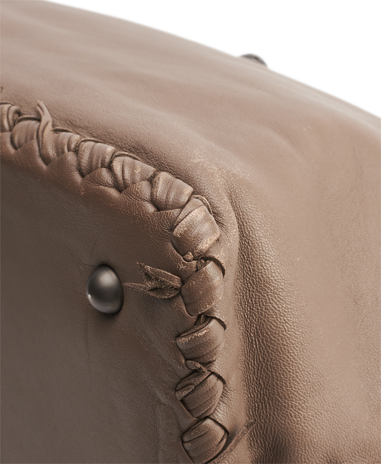 Подробное описание: микро царапины на фурнитуре; складки, потертости и небольшие царапины на внешней стороне; легкая потертость на внутренней стороне.